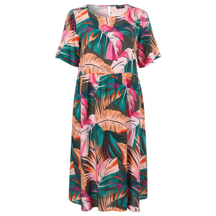 Zeigen Sie Ihre feminine Seite – mit diesem wadenumspielenden Kleid von VIA APPIA DUE! Mit seiner lässigen Passform schafft es es, Ihre Silhouette perfekt zu akzentuieren, und sein exotisches Allover-Muster liegt absolut im Trend. Der sportive Rundhalsausschnitt schafft zudem ein schönes Dekolleté. Wegen seiner kurzen Ärmel ist das Kleid besonders an warmen Tagen angenehm zu tragen.