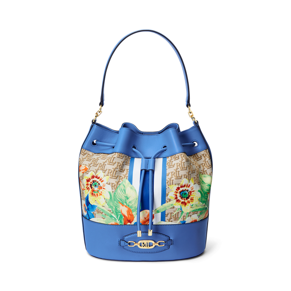 Diese markante Version der Tasche Andie in Beutelform ist aus speziell gewebtem Jacquard mit dem geblümten Monogrammmotiv von Lauren gefertigt und bietet ausreichend Platz für Ihre wichtigsten Utensilien. Der Besatz aus geschmeidigem Narbenleder, das sich durch seine natürlich glatte Oberfläche auszeichnet, und das auffällige „LRL“-Kettenlogo aus Metall sorgen für einen legendären Touch.