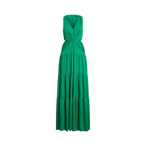 Geschmeidiger Satin verleiht diesem fließenden, nach unten hin ausgestellten ärmellosen Kleid einen prächtigen Glanz, während der Stufenrock bei jedem Schritt für anmutige Bewegung sorgt. Seitliche Cut-outs und das Twist-Detail vorne am Oberteil betonen den modernen Look.