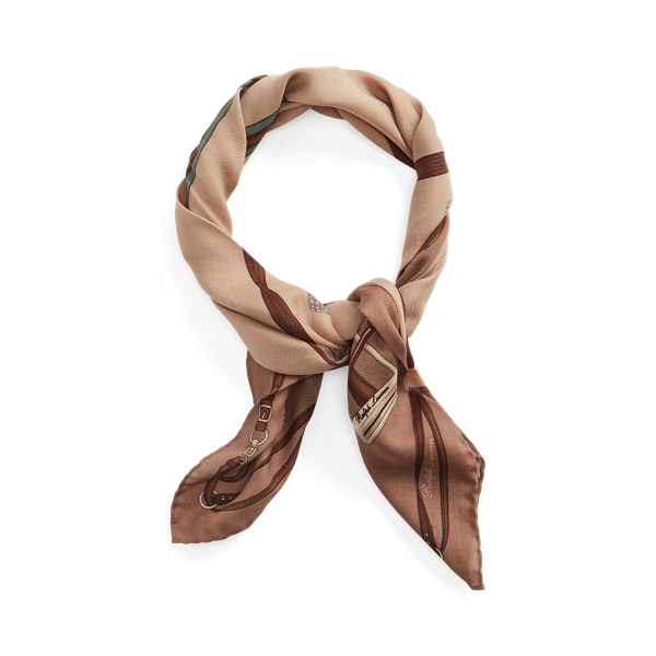 Dieses Halstuch aus Kaschmir und Seide präsentiert sich mit einem Druck im Reiterstil und handgerollten Enden.