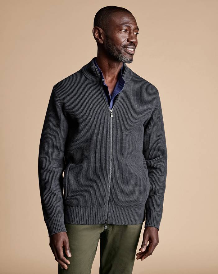 Chunky Zip Funnel Neck Cardigan - Slate Grey | Men's Charles Tyrwhitt Chunky Zip Funnel Neck Cardigan - Slate Grey Size Medium Wool