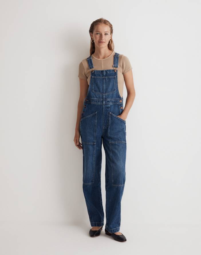 The cut: an update to our best seller, these oversized overalls are super relaxed with workwear details like knee patches, cuffable hems, a hammer loop and those extra side pockets (for a measuring tape, nails or, you know, a phone).The fabric: old-school 100 percent cotton denim with zero stretch.Vintage medium wash with authentic fading and distressing.11 1/2" rise, 17" leg opening, 30" inseam.100% cotton.Do Well: By buying cotton products from Madewell, you're supporting our investment in Better Cotton's mission to help cotton communities survive and thrive while protecting and restoring the environment. This product is sourced through a system of mass balance and therefore may not contain Better Cotton; for each piece made at the Fair Trade Certified™ factory, we contribute to a Community Development Fund managed by the workers.Machine wash.Imported.Madewell.com only.