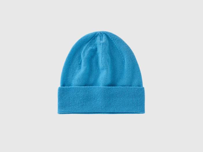 Benetton, Hellblaue Mütze Aus Reiner Merinowolle, größe OS, Hellblau, female