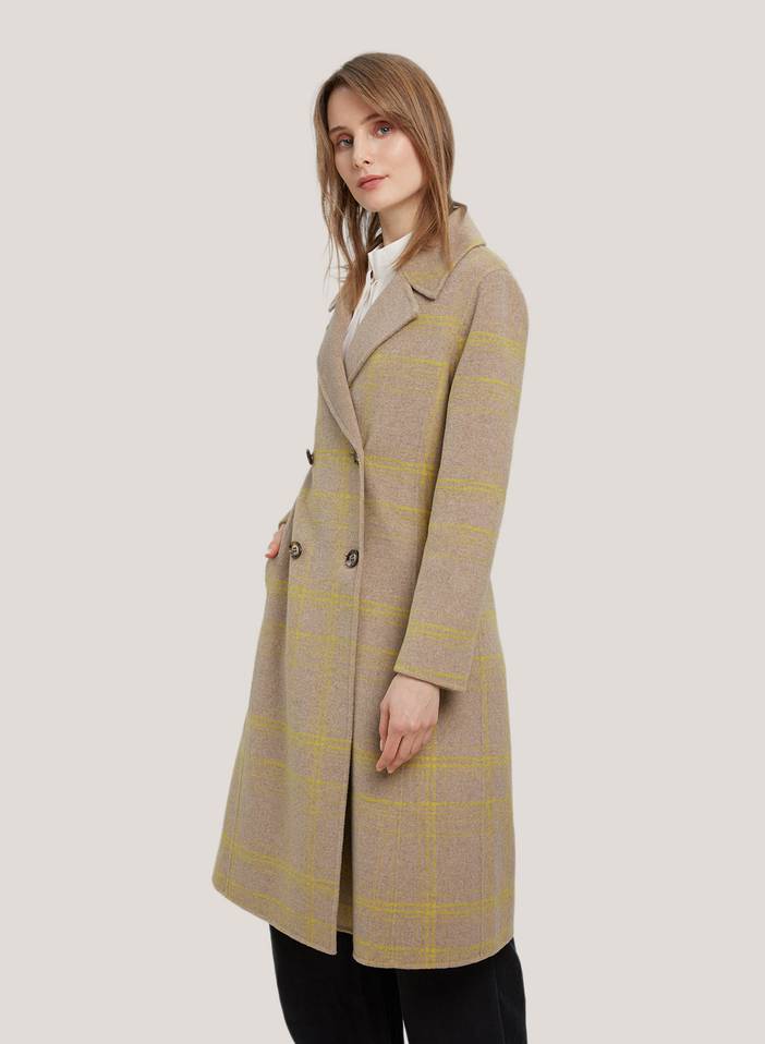 Plaid Double% Wool Coat Buttermilk S