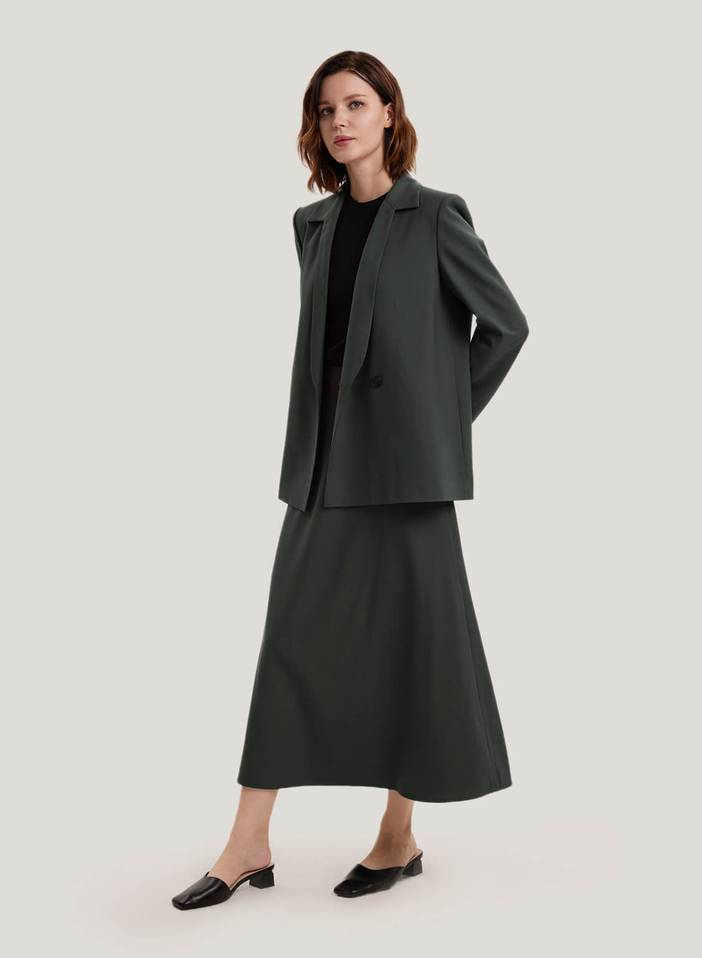 Wool Blazer And Maxi Skirt Set Green Slate S