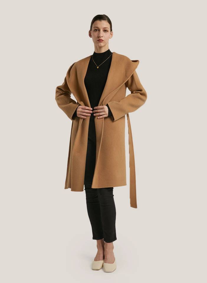 Hooded Wrap Wool Coat Camel S