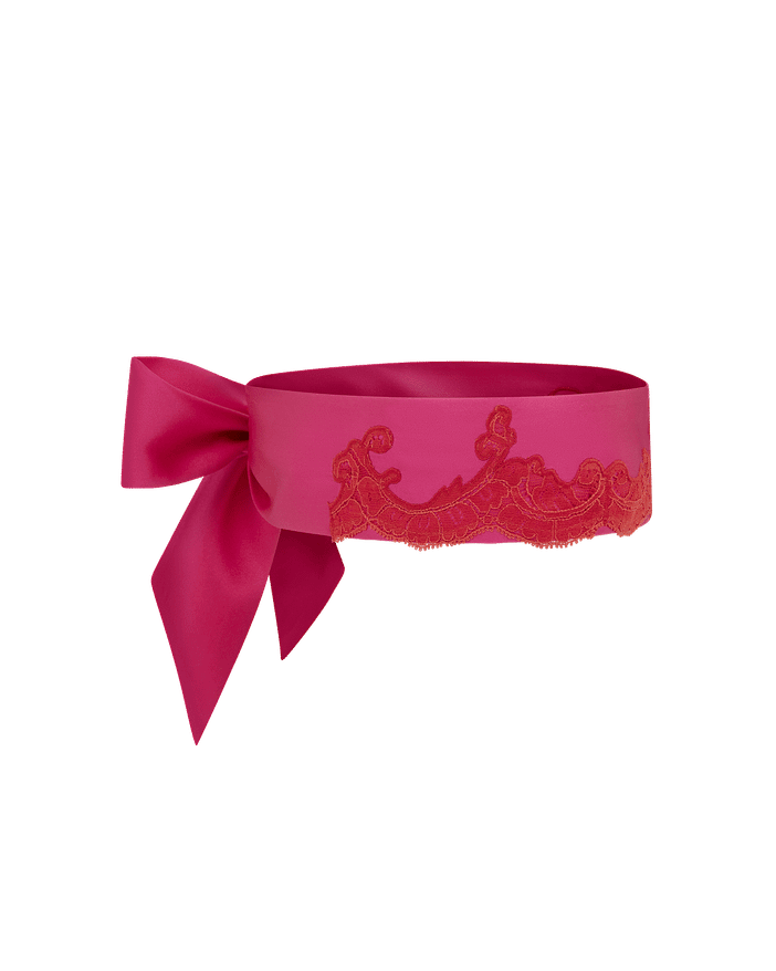 Luxuriate in Molly's timeless glamour. Made from outrageously sumptuous silk satin and overlaid with delicately hand-cut French lace, Molly is an AP classic. This blindfold brings some sophisticated kinkiness to romantic evenings in. Pink blindfold Red French lace Long sash ties go behind the head Team with the rest of the Molly range for a chic seduction