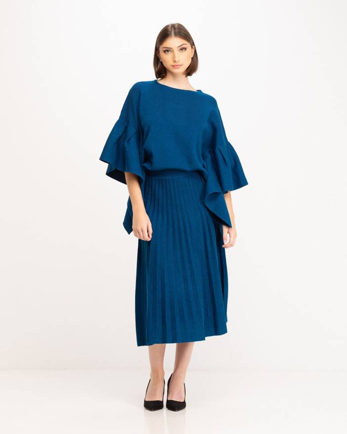 Descubre la elegancia y el encanto con nuestra falda midi de tiro alto. Su falda plisada le añade un toque de movimiento y feminidad, creando un look chic y versátil. Confeccionada con atención al detalle, la cinturilla al tono asegura un ajuste perfecto y cómodo.