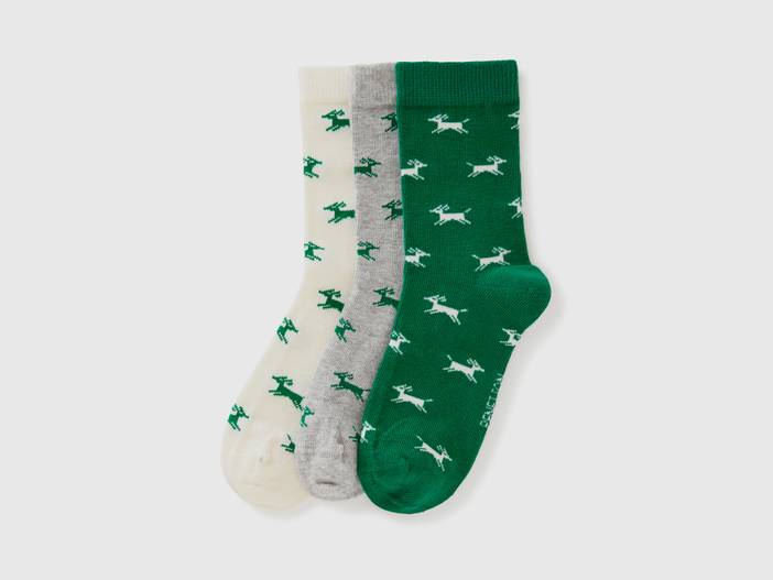 Benetton, Lange Strümpfe Mit Rentieren, größe 20-24, Bunt, male