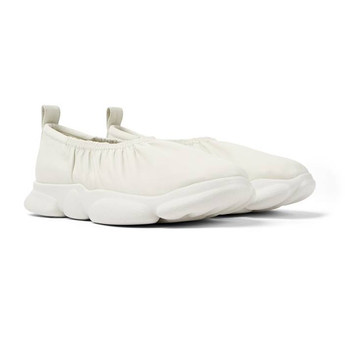Camper White leather women's ballerinas with OrthoLite® Recycled™ footbeds and XL EXTRALIGHT® Organix™ 3.0 outsoles (30% bio-circular compounds). A unisex ergonomic design inspired by the rocky landscape of the Tramuntana mountains. That's Karst. Upper Calfskin (Leather Working Group Certified) Color White Outsole/Features 70% EVA / 30% natural EVA XL EXTRALIGHT® Organix™ for lightness and shock absorption Insole OrthoLite® for cushioning Lining 100% recycled Polyester