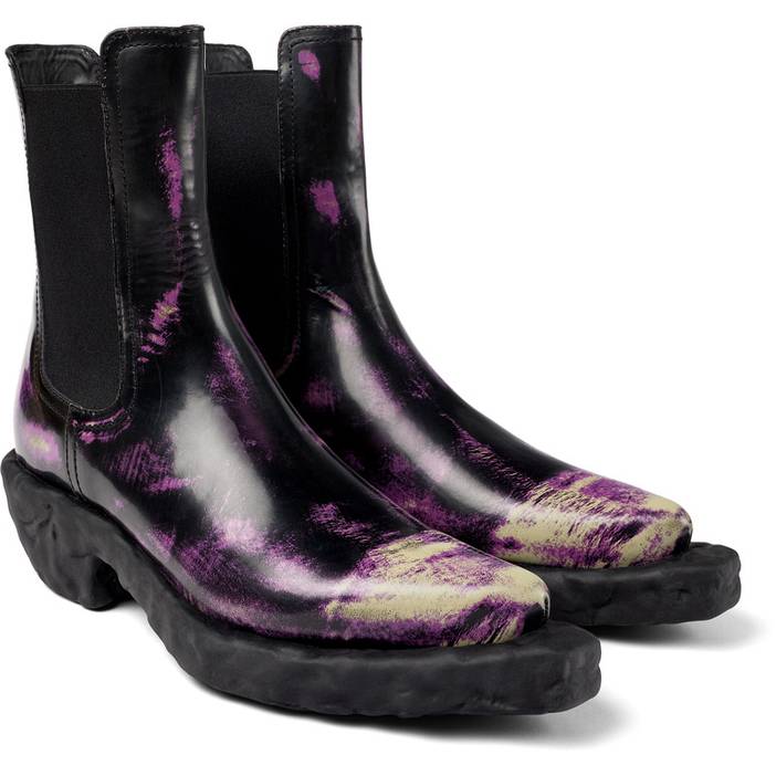 Camper Three-toned brushed leather boots with rubber outsoles (20% natural rubber, 5% TENCEL™). Upper Calfskin / Textile Color Multicolor Outsole/Features Rubber / Natural rubber / Tencel / ABS Insole EVA Lining 63% calfskin 19% recycled polyester 10% textile (84% recycled polyester - 16% latex) 8% nubuck
