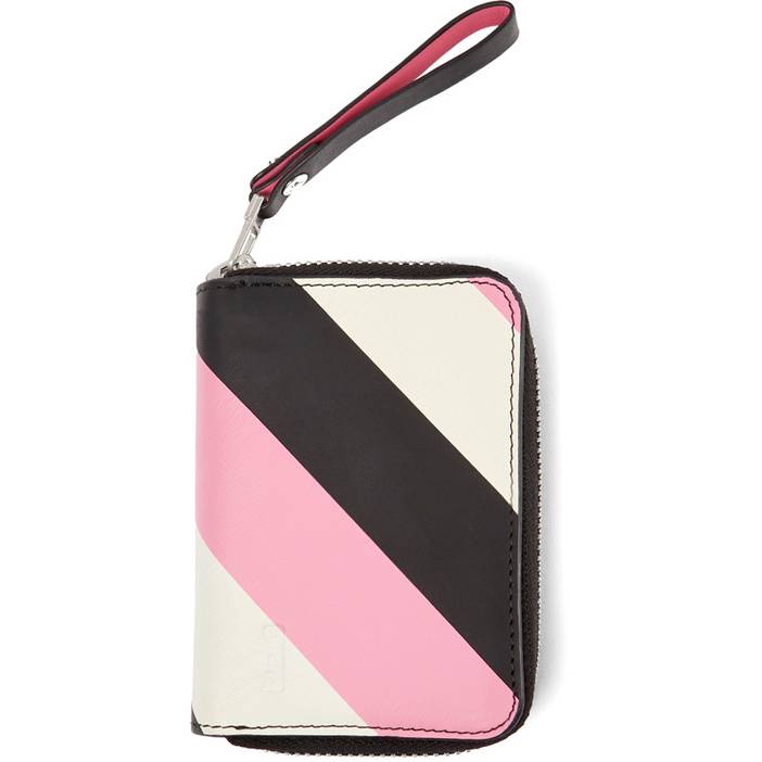 Camper Small black, pink, and white striped leather zip around wallet. The ingenious compact design of Mosa small accessories keeps you organised and clear-headed on the go. Discover a flash of Camper cheer in their eye-catching bright interiors. Material 100% Leather Color Multicolor Features Height: 8 cm Width: 11 cm Depth: 2 cm Interior Leather/Recycled Polyester