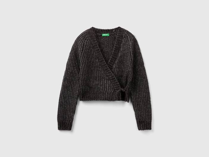 Benetton, Wickel-cardigan Mit Lurex, größe 2XL, Schwarz, female