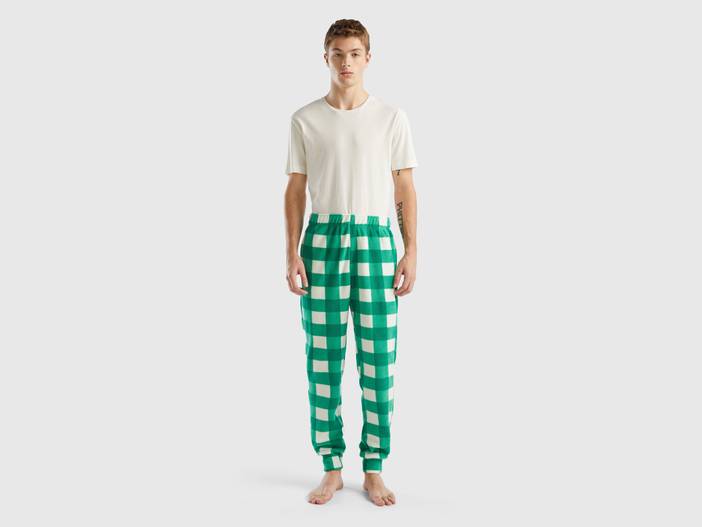 Benetton, Karierte Hose In Fleece, größe L, Grün, male