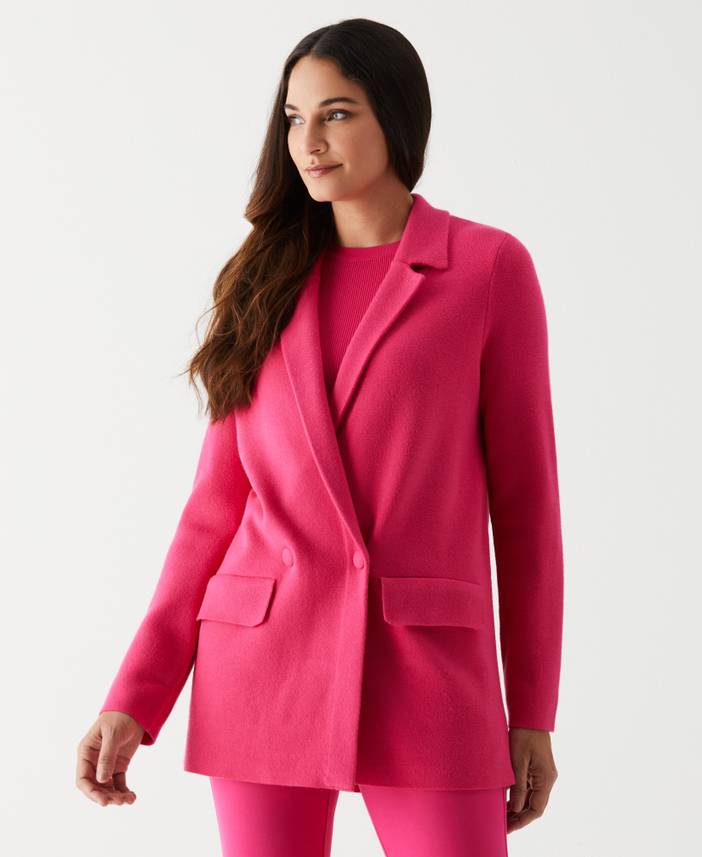 Stylish and comfortable, this Ella Rafaella women's blazer is your next go - to staple when it comes to office wear. Expertly crafted from luxe Milano sweater knit fabric, this women's jacket has a comfortable and cozy feel while the double - breasted silhouette and self fabric snap button closure adds a sleek, polished look. The notched lapel and functional front flap pockets add a smart touch, making this women's blazer jacket the perfect choice for any professional setting. The sleek and elevated design allows you to seamlessly transition this women's office wear piece from desk to dinner for easy, versatile wear. 47% Viscose / 30% Polyester / 23% Nylon Milano Sweater Knit Fabric Flattering Modern Fit Double - Breasted Front With Self Fabric Snap Closure Notched Lapel Functional Front Flap Pockets Long Sleeves 30.5" Waist Length Machine Wash Imported | Ella by Rafaella Women's Relaxed Sweater Blazer in Cabaret Black, Size Medium, Solid, Viscose/Polyester/Nylon