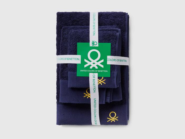 Benetton, Set Dunkelblaue Handtücher Aus 100% Baumwolle, größe OS, Dunkelblau, unisex