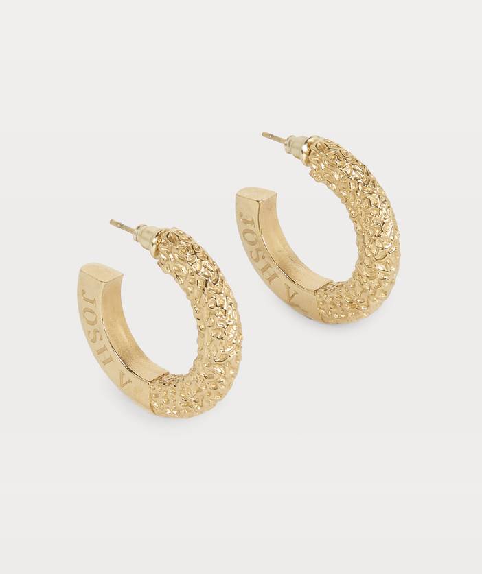 De JV Masy oorbellen in de kleur Champagne Gold zijn chic en tijdloos. Deze oorringen hebben een crunched structuur en zijn voorzien van een gegraveerd JOSH V-logo. Je sluit de oorbellen gemakkelijk door middel van een vlindersluiting.