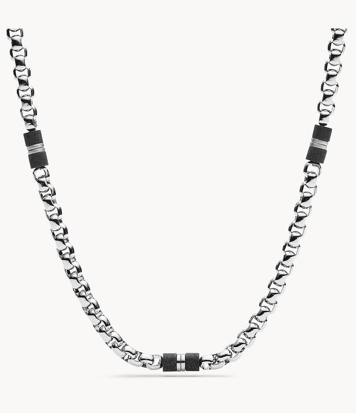 This 450mm + 50mm box chain necklace features genuine black marble beads, silver-tone stainless steel and a lobster clasp closure.