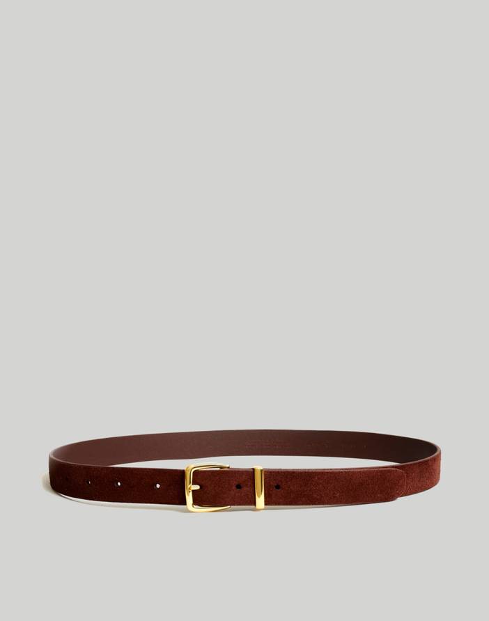 Made of supersoft suede, this classic belt has shiny gold-toned hardware to upgrade to your favorite jeans and tee 'fit.Designed to be worn at the hips.Suede.Width: 1 1/8".Spot clean.Imported.Select stores.