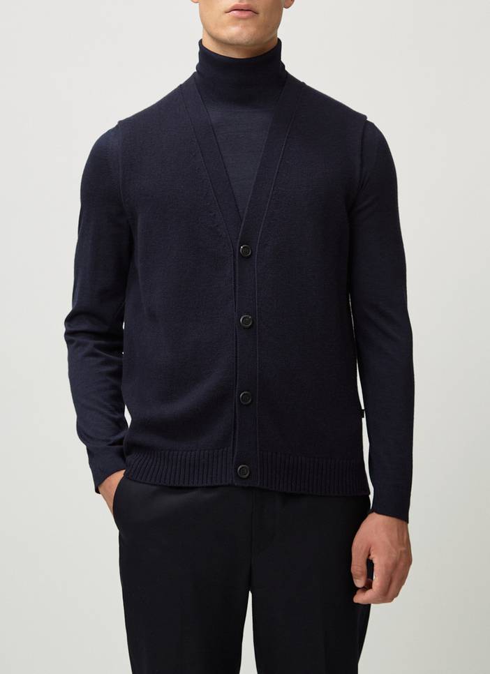 Wärmender Klassiker für kühle Tage: hochwertige Strickweste im Regular Fit mit Knopfleiste, geripptem Rippbündchen an Ärmel und Bundende. Material: die hochwertige Geelong-Wolle ist mulesingfrei und wird in Italien zum Premiumgarn versponnen. Haptik: klassisches Maschenbild mit leichtem und softem Wollgriff. Tragegefühl: leicht und angenehm wärmend. Hochwertige Verarbeitung mit handgekettelten Nähten und elastischen Bündchen.