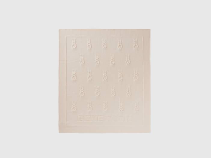 Babydecke aus 100% Baumwolle mit Strickmustern gearbeitet. Niedliche eingearbeitete Häschen und Logo am Rand. Ein Easy Care"-Accessoire, das direkt in der Waschmaschine gewaschen werden kann."