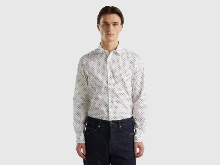 Benetton, Slim Fit Hemd Mit Mikro-muster, größe XXL, Weiss, male