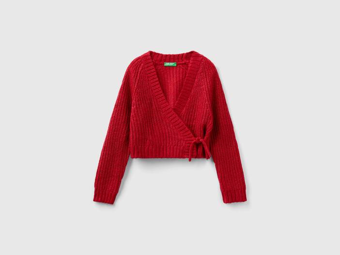 Benetton, Wickel-cardigan Mit Lurex, größe M, Rot, female