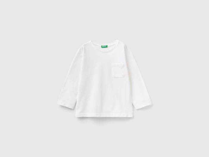 Benetton, T-shirt Mit Tasche Aus Piquet, größe 90, Weiss, male