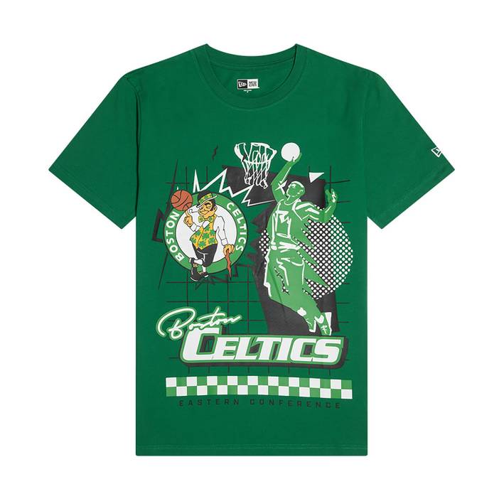 NBA Rally Drive Boston Celtics T-Shirt Boston Celtics logo with wordmark basketball graphic on front NBA All Star East and West team names listed graphic on rear New Era Flag embroidered on left sleeve 100% COTTON KNIT Product ID: 60491877 Please refer to US Size Guide below: SIZE CHEST WAIST HIP X-SMALL 31-33" 27-29" 31-33" SMALL 34-37" 30-32" 34-37" MEDIUM 37-40" 32-35" 37-40" LARGE 40-44" 35-39" 40-44" X-LARGE 44-48" 39-43" 44-48" 2X-LARGE 48-51" 43-47" 48-51" 3X-LARGE 51-56" 48-53" 51-56"