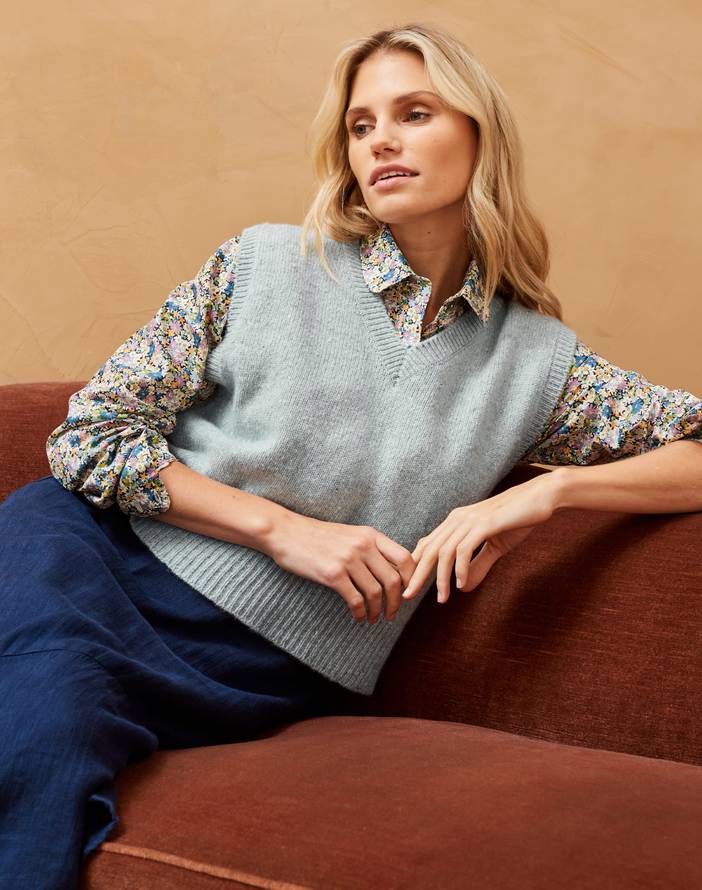 Every season, we bring you new, exciting colourings of our boxy-fit Donegal V-Neck Tanks, made from the finest, indulgently soft cashmere in Scotland and designed for endless styling with our blouses and dresses.