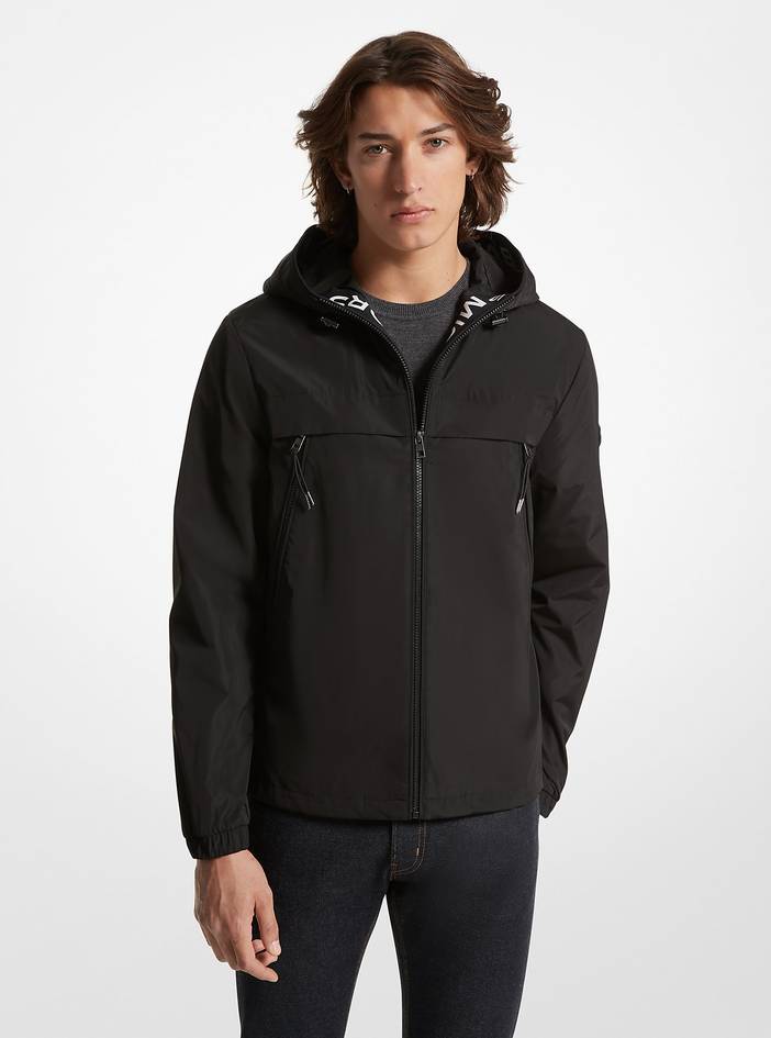 An outerwear essential for transitional weather, this windbreaker is cut from a quick-drying shell. Logo tape trim adds sporty flair, while zip pockets and an adjustable hood dial up the utility. Take it along with you on walks and bike rides when the forecast calls for showers.