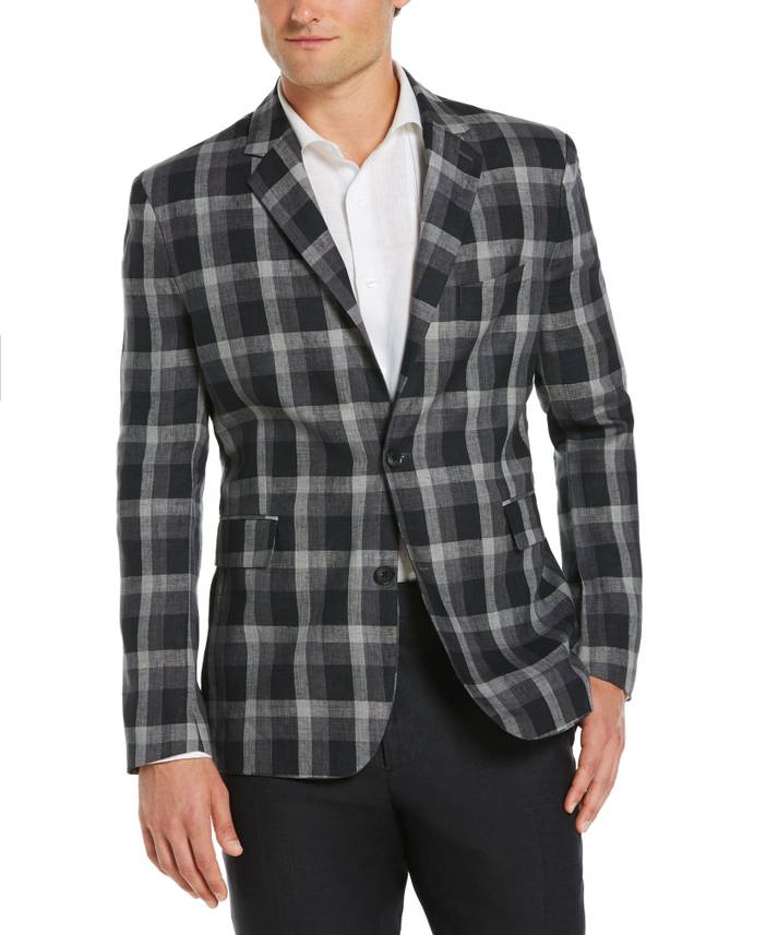 Collection Men's 100% Linen Delave Plaid Sport Coat