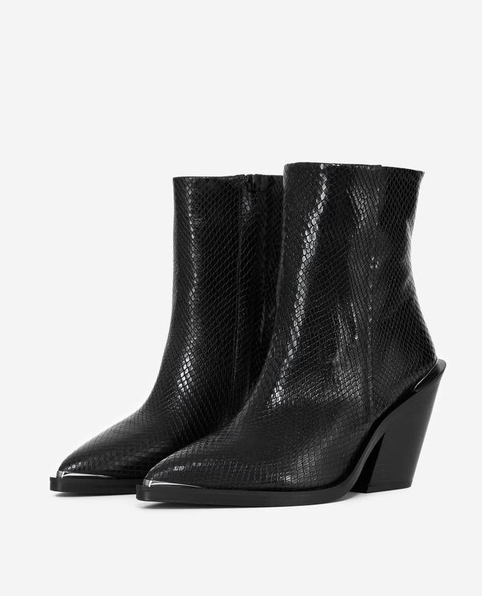 Schwarze Stiefeletten Leder Python-optik