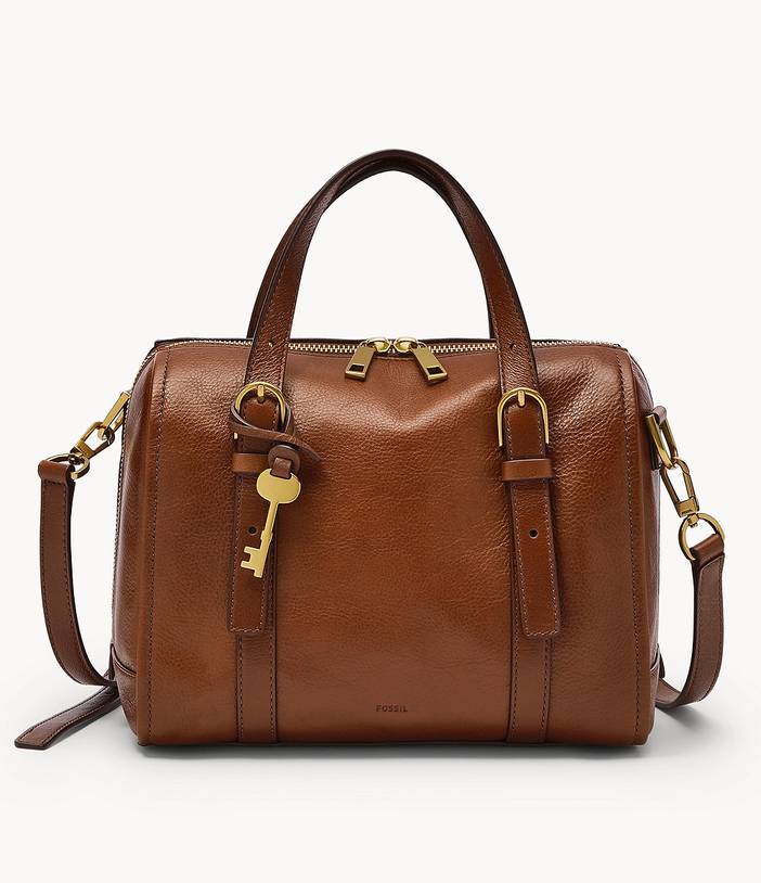 This LiteHide™ leather satchel features 1 zip pocket, 2 slide pockets and an adjustable & detachable crossbody strap, 2 adjustable handles. Fossil leather products support responsible manufacturing via the Leather Working Group.