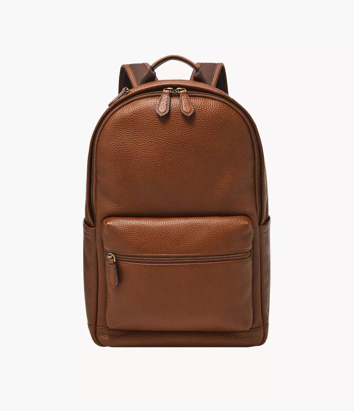 This LiteHide™ leather backpack features 1 back padded laptop zip compartment, 1 front zip pocket, 1 top zip pocket and 1 back luggage strap with 1 top handle and 2 backpack straps. Fossil leather products support responsible manufacturing via the Leather Working Group.