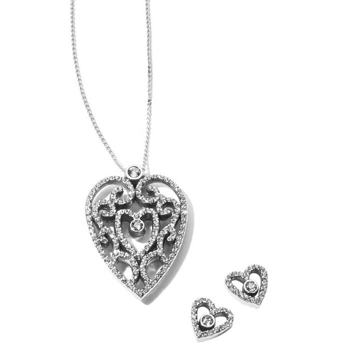 This glistening heart jewelry adds sparkle to her look. It was inspired by the iridescence of light seen through a telescope.