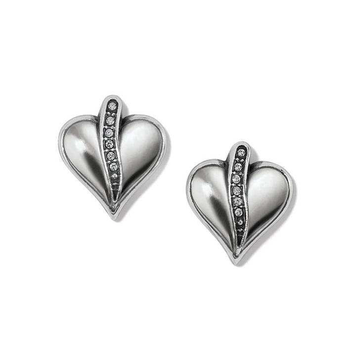 Reminiscent of handmade, sculpted fine sterling silver jewelry, these earrings have pillow-shaped petite hearts with a river of fine crystals  making them perfect.