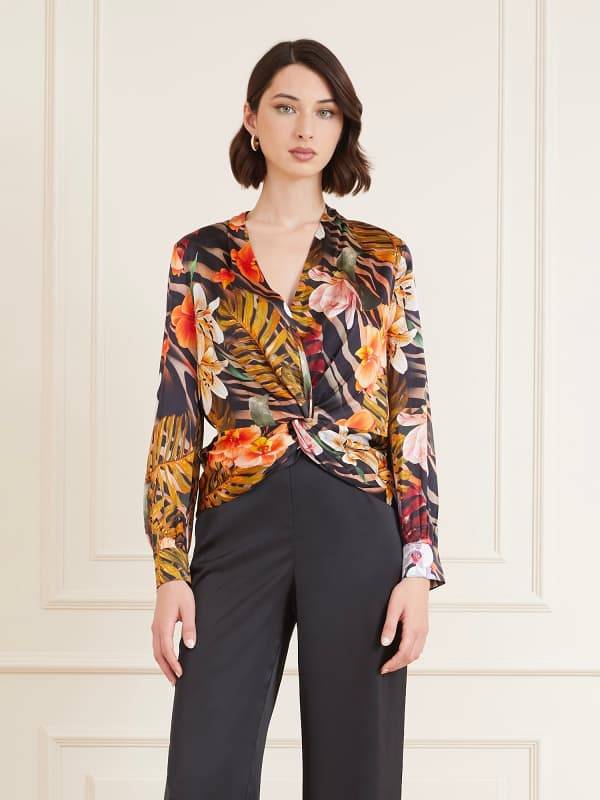 Blouse met all-over bloemenprint en knoop aan de voorkant.Lange, zachte mouwen met manchetten.Blouse met normale pasvorm en V-hals.Stretchstof: de stof sluit perfect aan op de vorm van het lichaam.Het model draagt maat IT 42. Zie onze maattabel hierboven.Totale lengte: 39 cm/ 15,35 inch.Lengte mouwen: 61 cm/ 24,02 inch.Valt normaal.