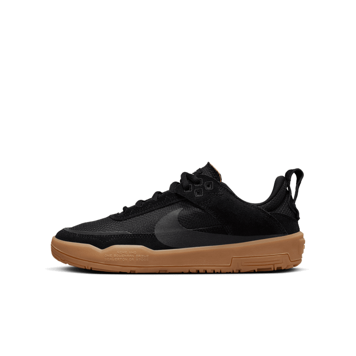 Ein Skateboardschuh wie für dich gemacht – endlich! Der Nike SB Day One ist der erste Nike Skateboardschuh, der speziell für Kinder völlig neu entwickelt wurde. Das skateboardspezifische Profil und das Zoom Air-Element geben dir den Grip und die Dämpfung, die du brauchst, um an deine Grenzen zu gehen und immer wieder neue Tricks auszuprobieren. Dank des zusätzlichen Mesh-Einsatzes ist der Schuh atmungsaktiv und die strapazierfähigen Wildlederüberzüge sind schnell eingetragen, was dir ein tolles Gefühl gibt und einen super Flick ermöglicht. Air-Design:Das federnde Zoom Air-Element sorgt für zusätzliche Fersendämpfung und Tragekomfort, damit du den ganzen Tag lang skaten kannst.,Boardgefühl:Wir wissen, wie wichtig es ist, dass du das Board unter deinen Füßen spüren kannst. Nur so hast du die perfekte Kontrolle über dein Board. Je leichter und flexibler der Schuh, desto besser ist das Boardgefühl. Wir haben überschüssigen Schaumstoff aus diesem Schuh entfernt, um das Gesamtgewicht zu reduzieren und die Flexibilität zu erhöhen.,Strapazierfähig und atmungsaktiv:Die strapazierfähigen Wildlederüberzüge sind schnell eingetragen, was dir ein tolles Gefühl gibt und einen super Flick ermöglicht. Das Mesh verbessert die Atmungsaktivität, damit du deine Skates-Sssions niemals vorzeitig beenden musst, weil sich deine Füße heiß anfühlen.,Cupsohlen-Konstruktion? Was ist das?:Wir fertigen diese Schuhe in einem Verfahren, das als Cupsohlen-Konstruktion bezeichnet wird. Der untere und der obere Teil des Schuhs sind zwei separate Teile, die zusammengefügt wurden. Weitere Vorteile:Die Schnürsenkel sind dank gummierter Spitzen strapazierfähiger und fransen nicht aus.Die Fersenschlaufe aus Wildleder vereinfacht das Anziehen.