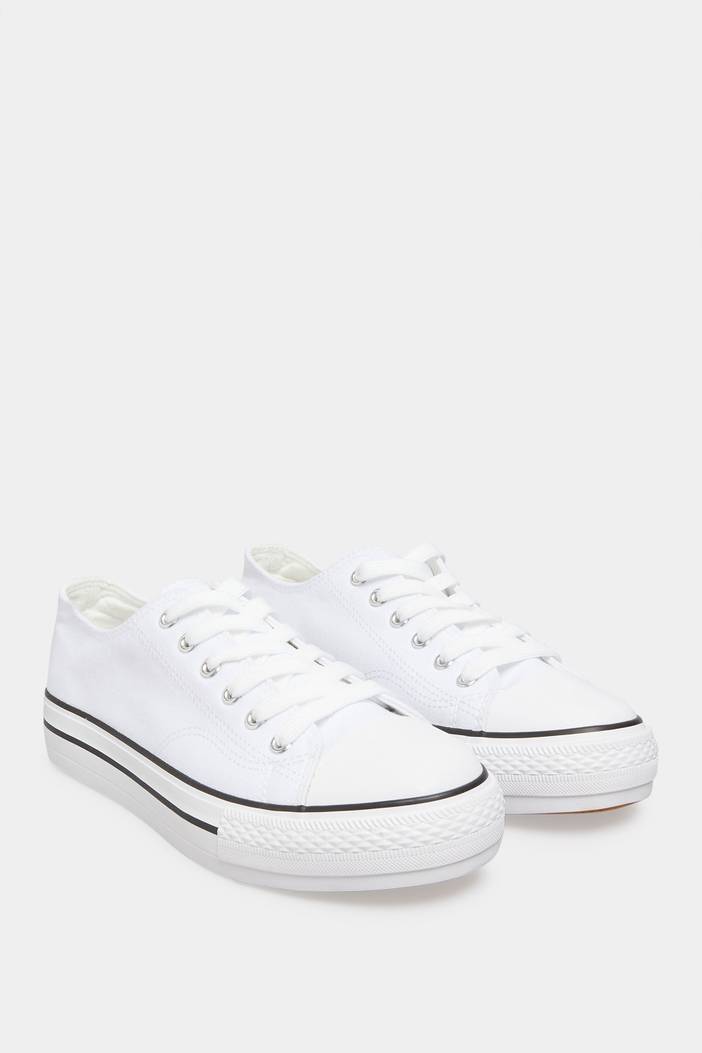 Canvas Sneakers Met Vetersluiting & Brede Pasvorm In Wit