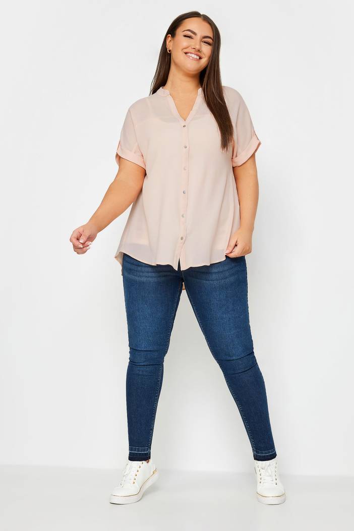 Overhemd Met Korte Mouwen En Lange Achterkant In Zalm, Dames Curve & Grote Maten Kleding, Yours