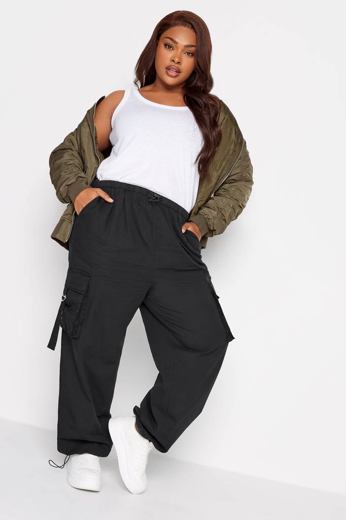 Parachutebroek Van Katoen Met Zakken In Zwart, Dames Curve & Grote Maten Kleding, Yours