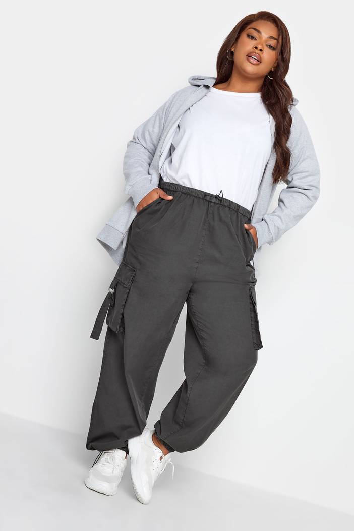Parachutebroek Van Katoen Met Zakken In Grijs, Dames Curve & Grote Maten Kleding, Yours