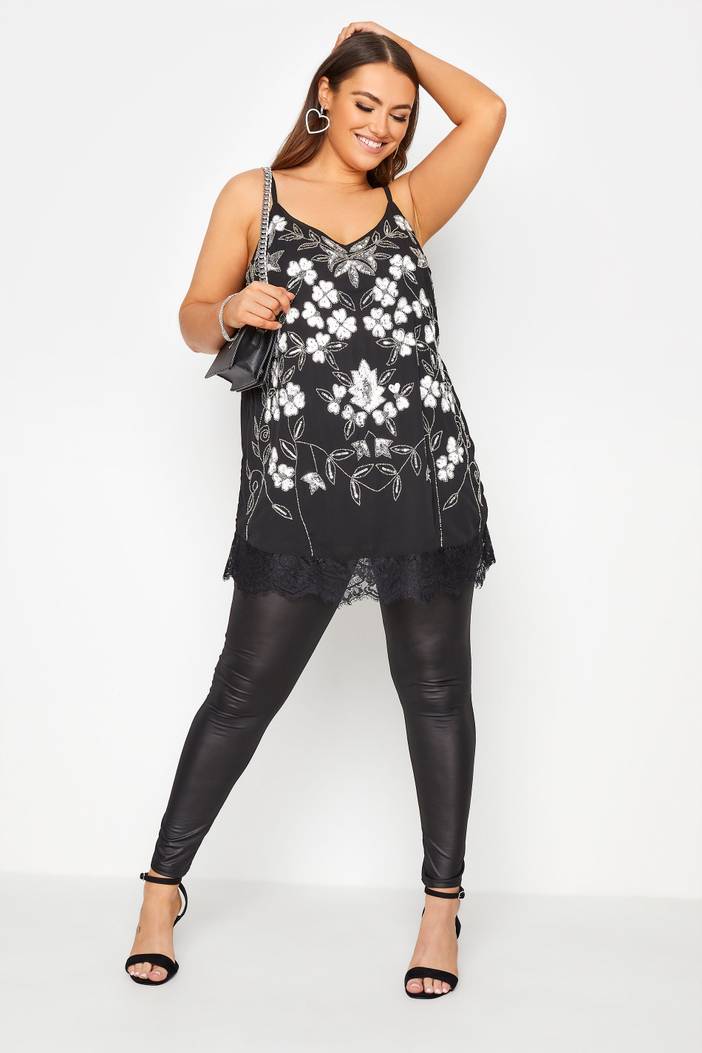 Luxe Camitop Met Versiering En Kanten Zoom In Zwart En Wit, Dames Curve & Grote Maten Kleding, Luxe: Ultimate Embellishment