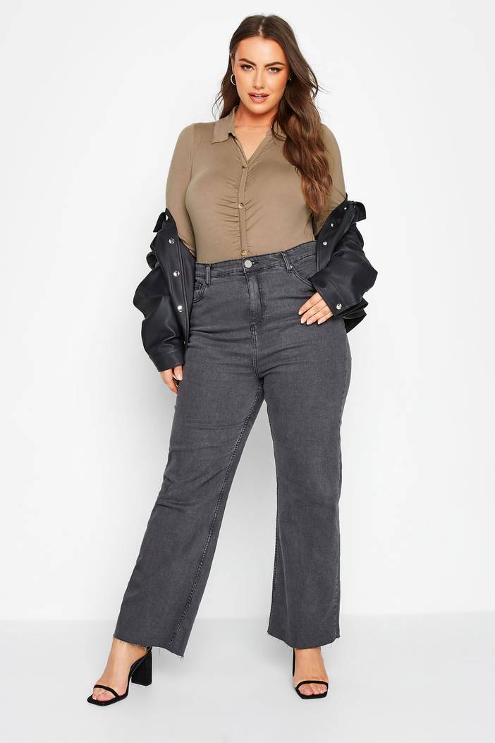 Body Met Ruches & Lange Mouwen In Beige, Dames Curve & Grote Maten Kleding, Limited Collection