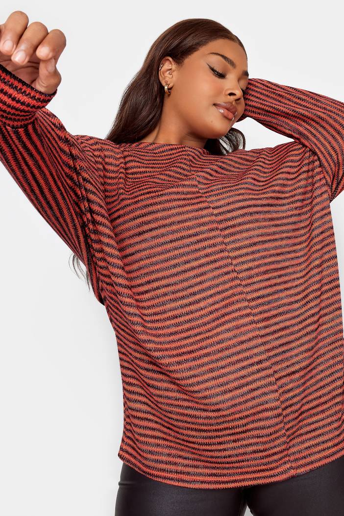 Yours Luxury Gestreepte Top Met Vleermuismouwen In Oranje, Dames Curve & Grote Maten Kleding, Yours Luxury Capsule Collection