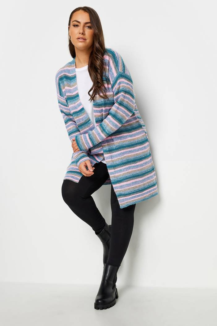 Yours Gebreid Vest Met Strepenprint In Blauw/Roze, Dames Curve & Grote Maten Kleding, Yours Luxury Capsule Collection