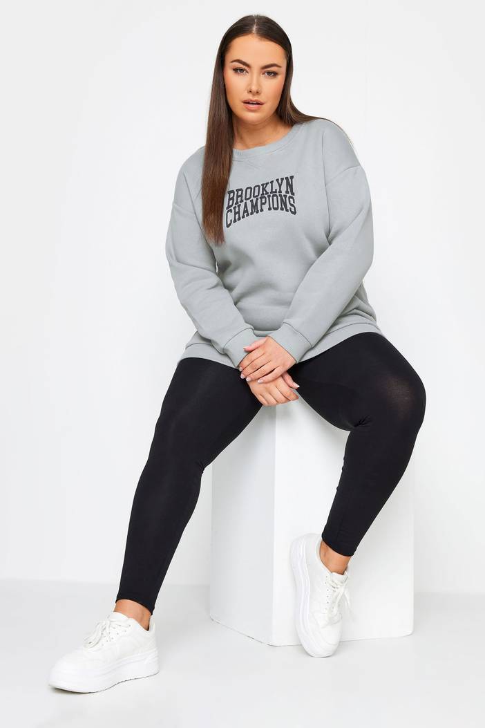 Sweatshirt Met 'Brooklyn Champions' Slogan In Lichtgrijs, Dames Curve & Grote Maten Kleding, Yours