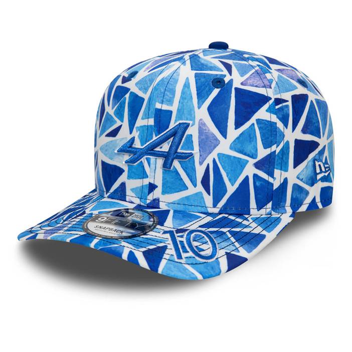 Pierre Gasly Barcelona Alpine Racing 9FIFTY Snapback Cap Race Special Alpine Racing logo on front Driver number 10 on left of visor BWT logo on right A lif3 logo on rear right panel Pierre Gasly logo on rear arch New Era Flag embroidered on left All over print on crown and top of visor Structured crown Snapback Curved visor Blue undervisor 100% POLYESTER Product ID: 60573884