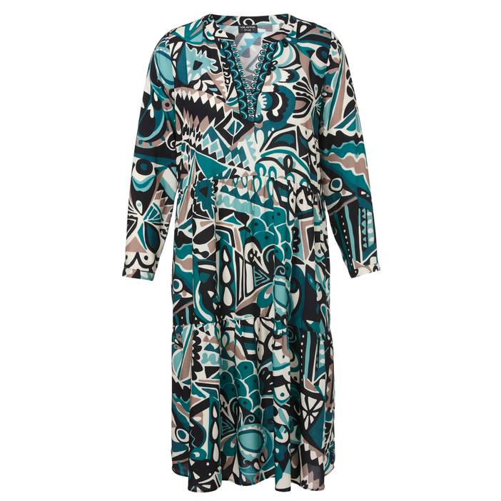Mit diesem wadenumspielenden Kleid von VIA APPIA DUE sind Sie immer top gestylt! Seine lässige Passform umspielt sanft Ihre Silhouette und schafft ein wunderbares Tragegefühl, welches den ganzen Tag anhält. Dank des grafischen, abstrakten Allover-Musters entsteht zudem eine moderne Optik, die alle Blicke auf sich zieht. Ob mit Pumps oder Sneakern, dieses Kleid ist immer ein Hingucker!
